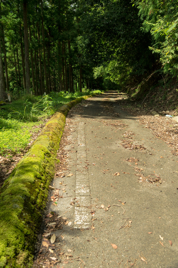 折り畳まれた直線道路、山側には高い擁壁、路肩には縁石、そしてセンターラインですが…